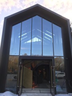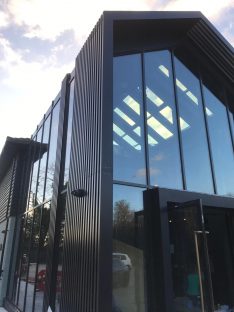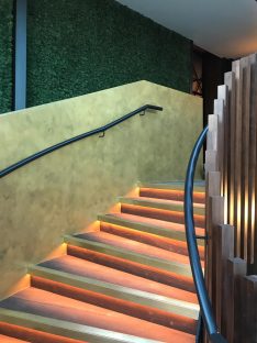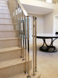 Mild steel staircase, stainless steel balustrade with glass infills for a leading options in UK.