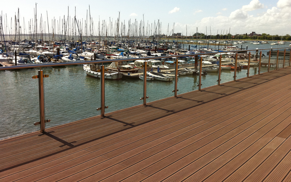 Stainless steel balustrade with glass infills to a new terrace at Parkstone Yacht Club, Poole, Dorset