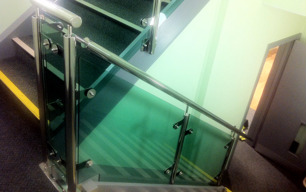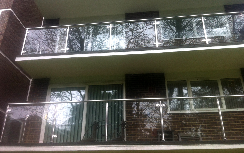 New stainless steel balustrades with glass infills to a large block of flats in Dorset.